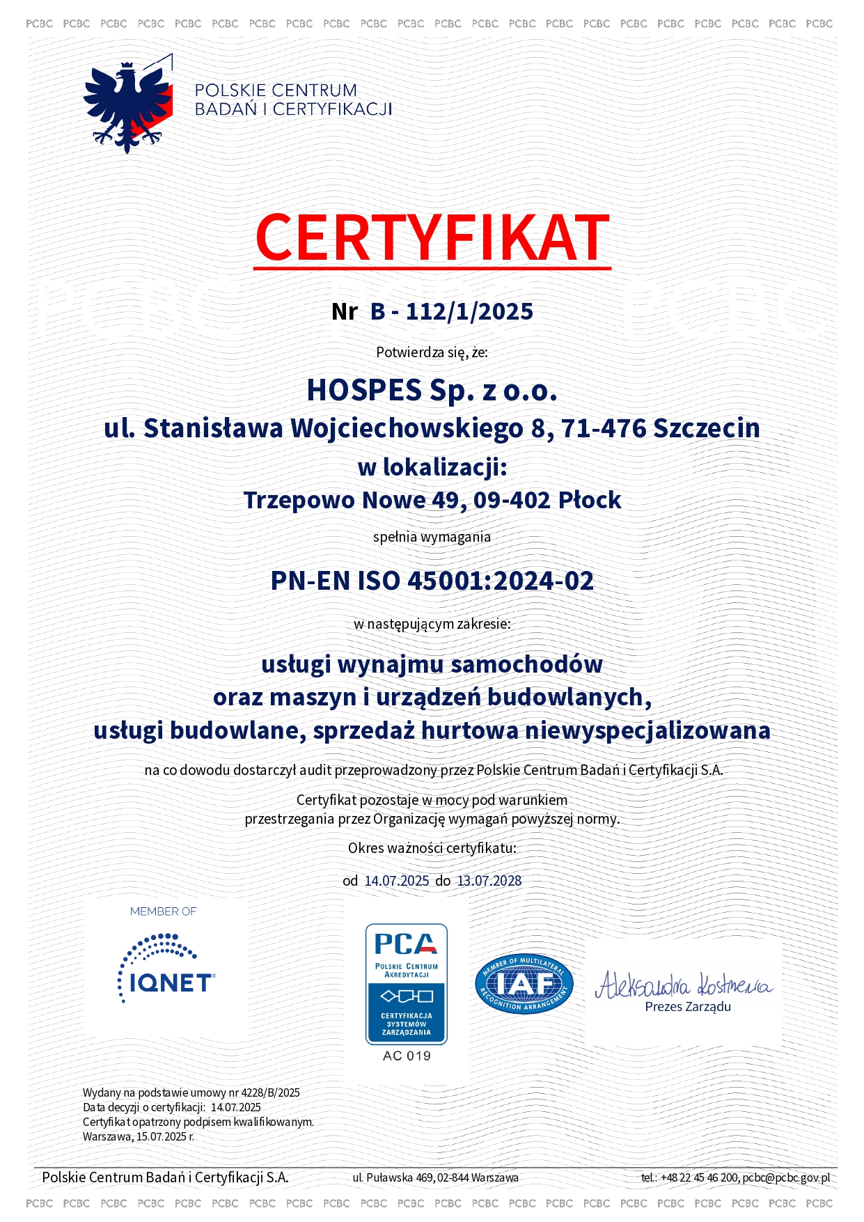 • Certyfikaty